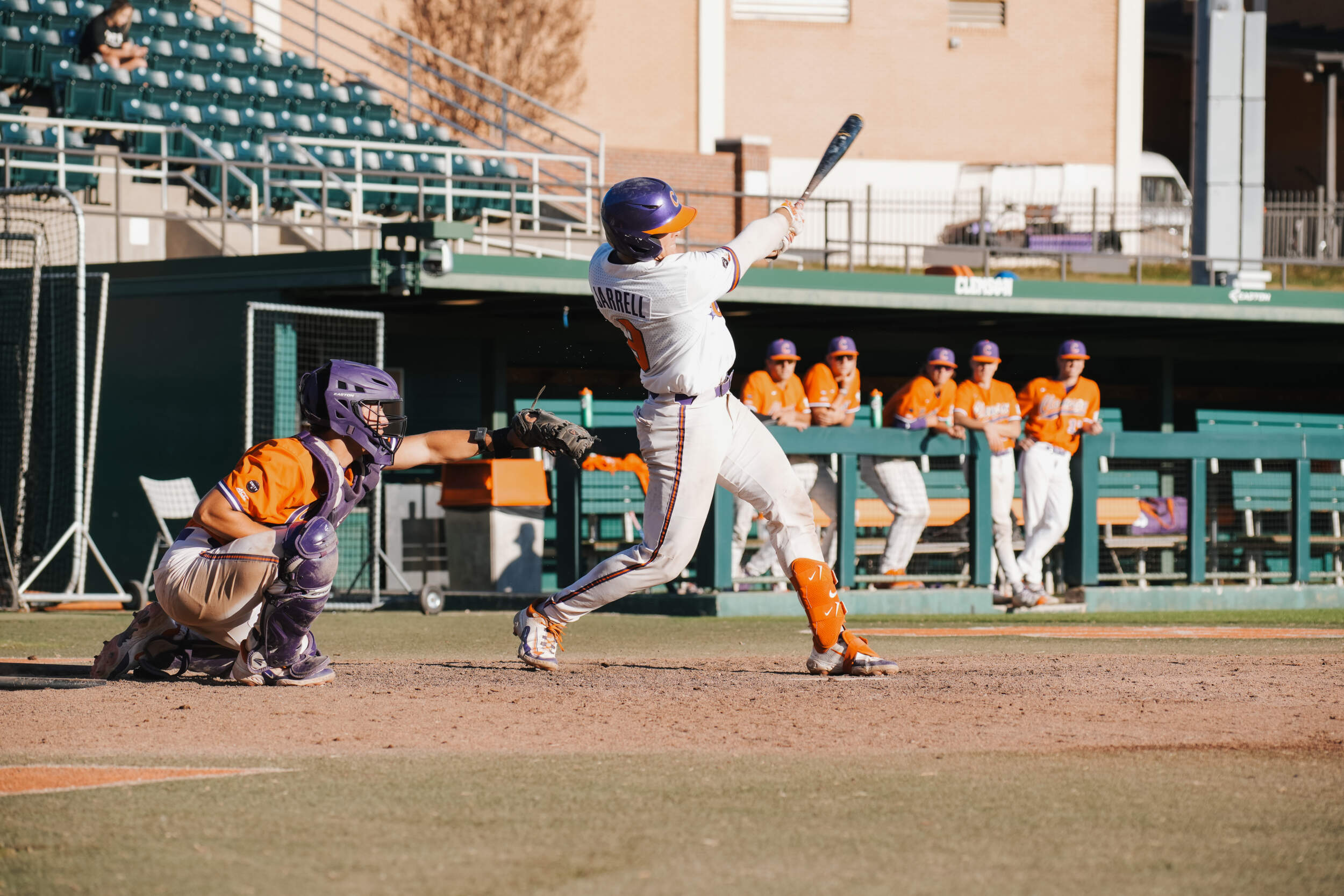 2025: Team co-captain … Buster Posey Award Watch List member … won the Tiger Baseball Award, given to the team’s best leader … strength & conditioning All-American by NSCA … All-ACC Academic selection … hit .263 with 45 runs, five doubles, 15 homers, 41 RBIs, a .515 slugging percentage, .387 on-base percentage, 34 walks and eight hit-by-pitches in 59 games (57 starts at catcher) … first in the ACC in chances (537) and putouts (494) and tied for third in runners caught stealing (11) … led the team in homers … hit .303 with nine homers, five doubles, 20 RBIs, 26 runs and a .596 slugging percentage in 29 ACC regular-season games … had 10 multiple-RBI games … hit a grand slam against Winthrop on Feb. 25 … went 1-for-3 with a three-run homer and walk against USC Upstate at Greenville, S.C. on March 4 … went 1-for-1 with two runs, two walks and a hit-by-pitch against Davidson on March 8 … went 1-for-3 with two RBIs and two walks against Notre Dame on March 15 … went 3-for-5 with two doubles, an RBI and two runs against No. 11 Wake Forest on March 22 … went 3-for-5 with a team-season-high-tying two homers and three runs at No. 19 Georgia Tech on March 28 … went 2-for-3 with a homer, two runs and a walk at California on April 5 … hit a team-season-high-tying two homers against Gardner-Webb on April 9 … went 1-for-3 with a two-run homer and walk against Stanford on April 11 … hit a go-ahead homer in the sixth inning against Stanford on April 12 … hit a homer against No. 17 Louisville on April 18 … hit a homer at No. 25 NC State on April 25 … went 1-for-2 with a double, two runs and two walks against Duke on May 9 … went 4-for-5 with a homer at Pittsburgh on May 15; was the catcher for Clemson’s 15th no-hitter in history and first since 2009 … went 2-for-4 with a homer, two runs and a walk at Pittsburgh on May 17; was 6-for-9 (.667) with two homers, three runs and a walk in two games in the series … went 2-for-3 with a homer, three RBIs, two runs and a walk against No. 20 NC State in the ACC Tournament on May 22 … hit a grand slam against No. 16 Georgia Tech in the ACC Tournament on May 24 … No. 30 catcher in the nation in the preseason by D1Baseball … No. 67 ACC prospect for the 2025 draft in the preseason by D1Baseball.
