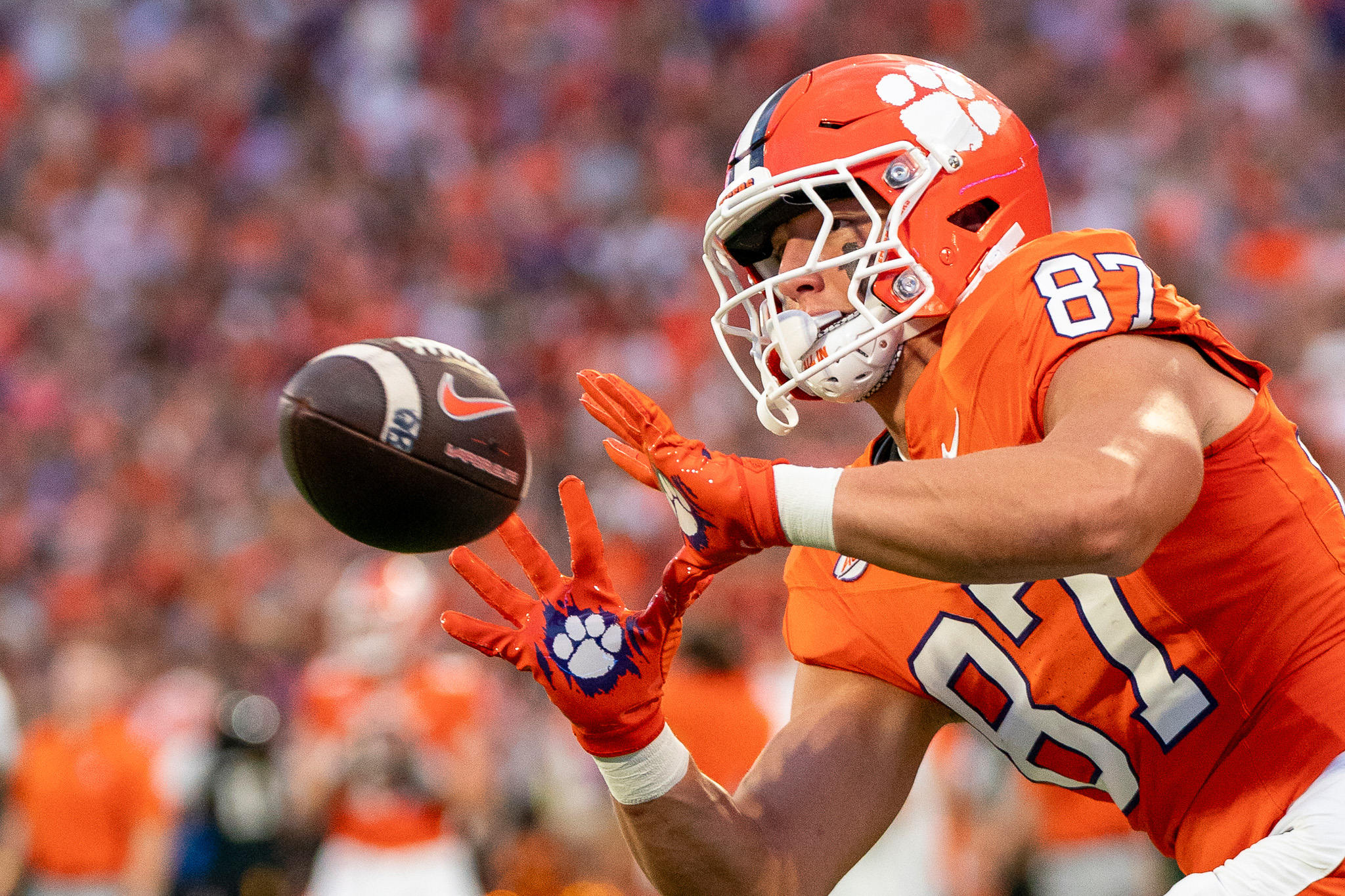 Before Clemson: Rated as a consensus top 125 player nationally by 247Sports, ESPN, On3, Rivals and PrepStar … rated as the No. 58 overall player in the nation, third-best player in Illinois and third-best tight end in the nation by PrepStar … ranked by On3 as the No. 85 player in the nation and as the sixth-best tight end and fourth-best player in Illinois … Rivals ranked him as the nation’s No. 100 overall player, fifth-best tight end and fourth-best player in Illinois … listed as 247Sports’ No. 116 overall player and as the service’s eighth-best tight end and fourth-best prospect in Illinois … rated as ESPN’s No. 124 overall player, third-best tight end in the nation and third-best player in Illinois … finished his career with 231 receptions for 3,867 yards and 51 touchdowns … finished in the top five in Illinois high school history in receiving yards (second), receiving touchdowns (third) and receptions (fifth) … as a senior, recorded 21 receptions in a single game against Wheaton Academy and five touchdowns in one game against Christ The King; those were the second-best single game figures in each category in Illinois high school history … earned conference player of the year as a senior … two-year team captain and three-time all-area selection … earned all-state honors from multiple services as a junior and senior … 2023 Northwest Herald Player of the Year … played for Liam Kirwan at Marian Central Catholic … also an outstanding basketball player who became the first high school athlete in Illinois history to catch 200 passes in football and score 2,000 points in basketball.